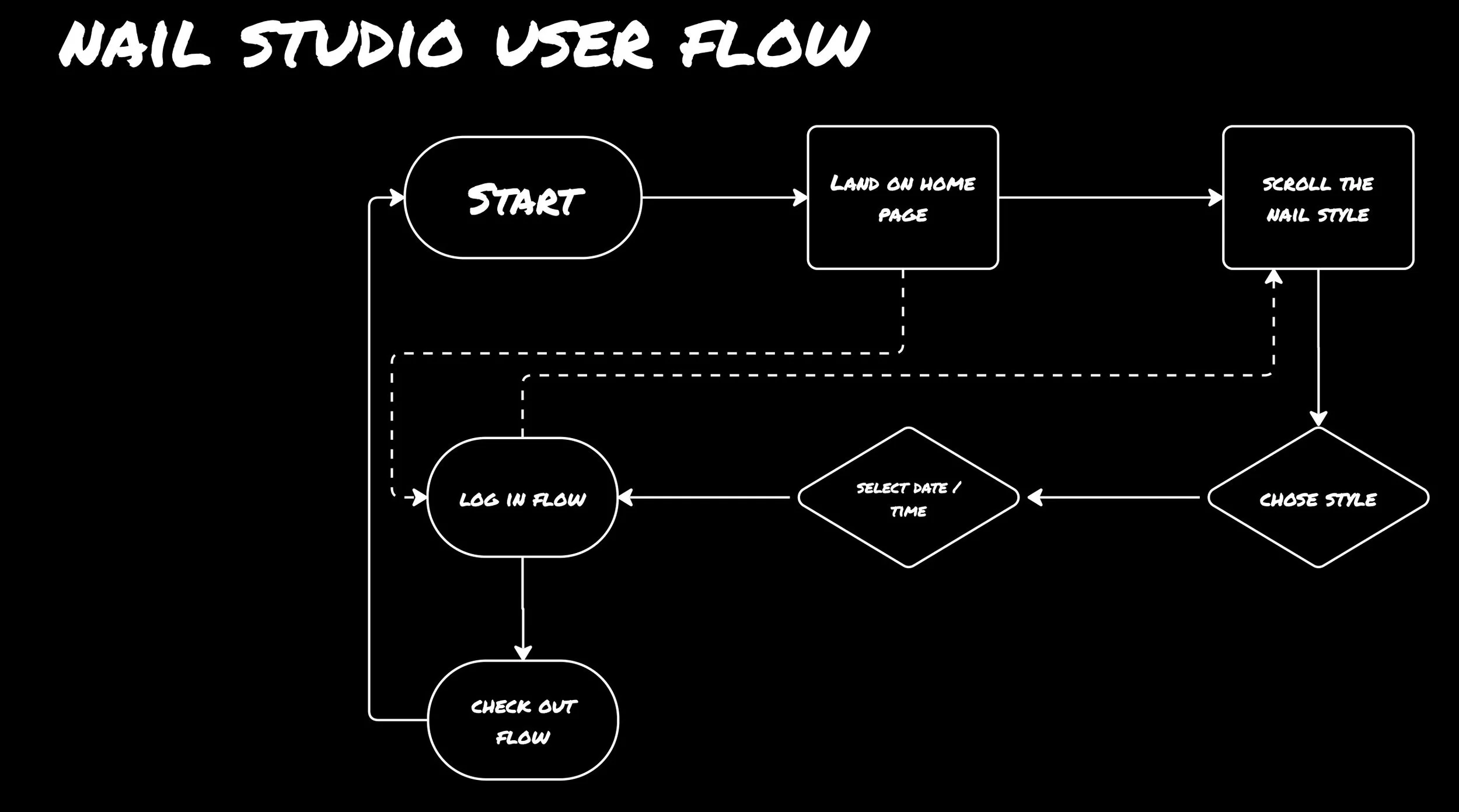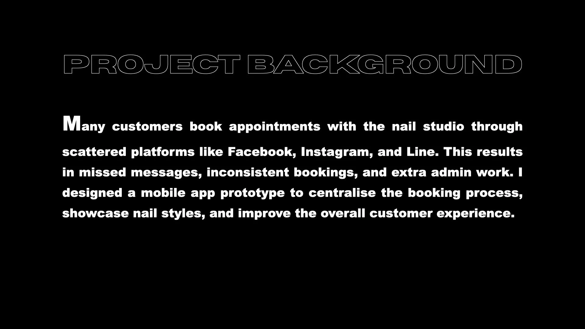 I was developing this app to enhance our online system and improve user experiences. I observed that many people still make reservations through various platforms such as Facebook, Instagram, Line, and others. However, this reliance on multiple platforms can lead to lost or overlooked messages. My goal is to create an online system that effectively addresses these issues. Additionally, I want users to easily access updates on new nail styles, ensuring they never miss out on the latest trends.